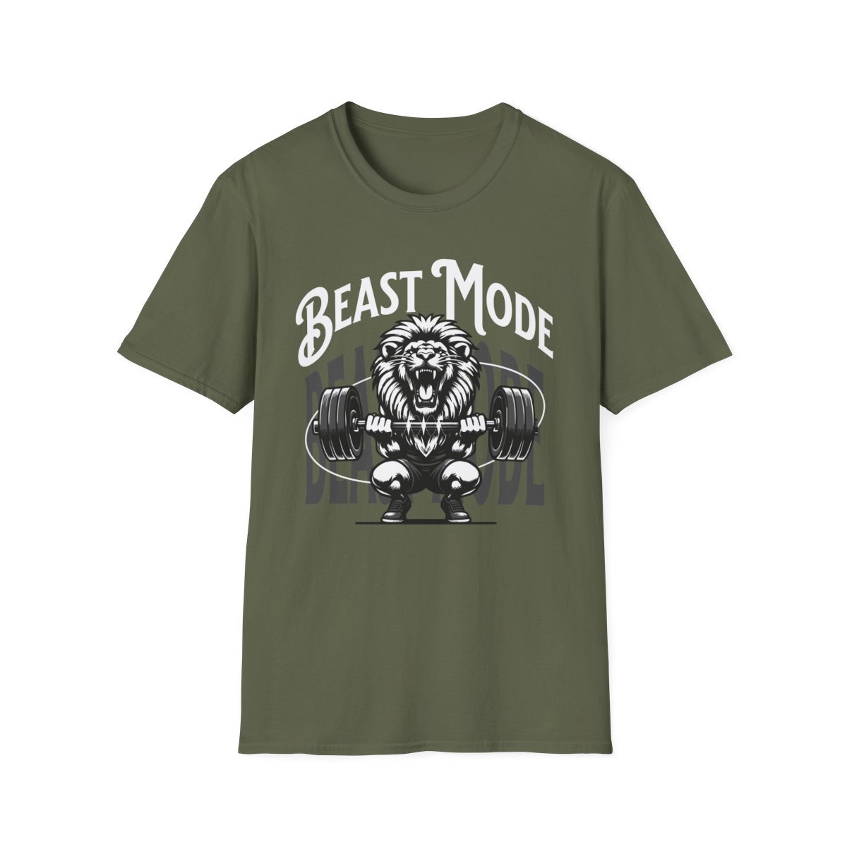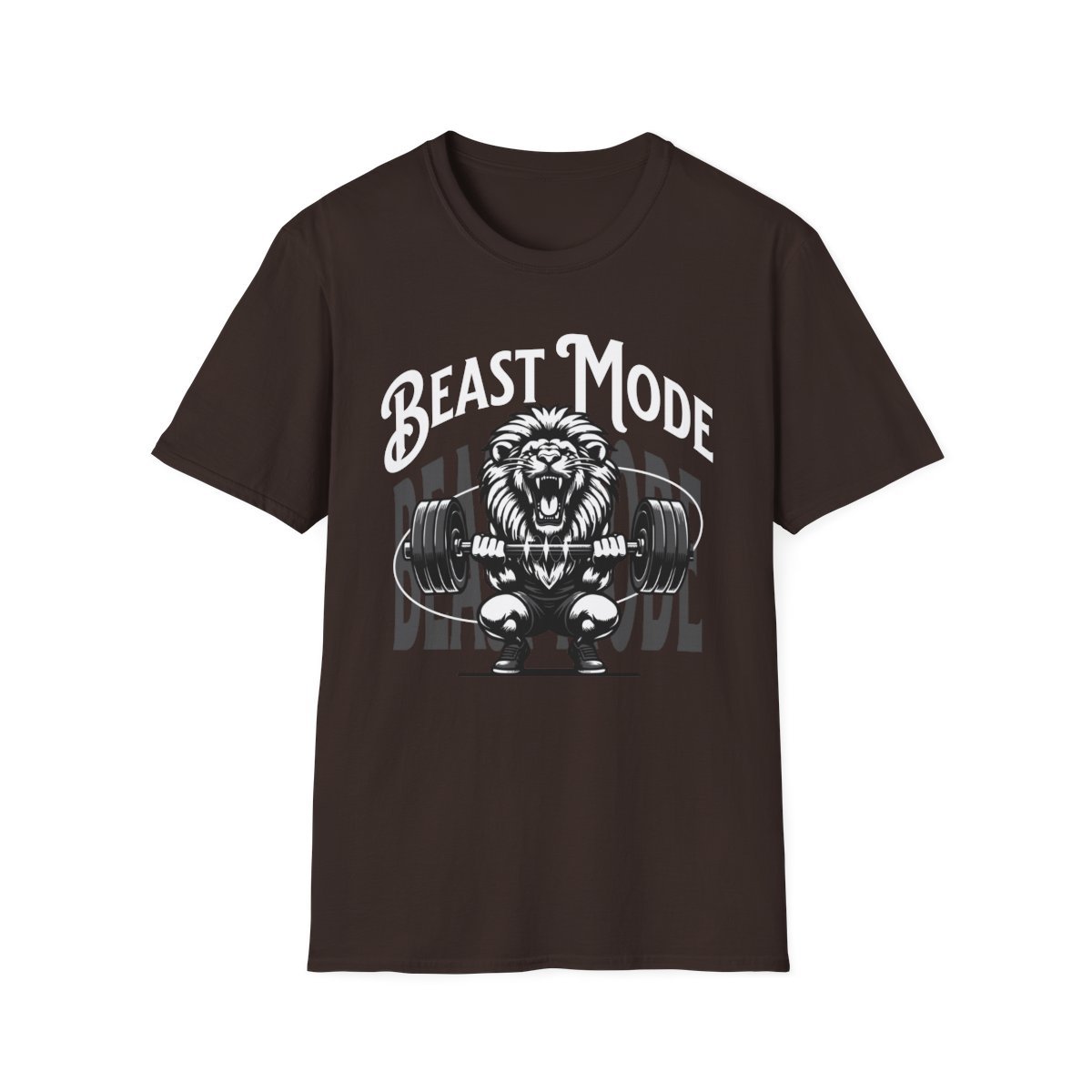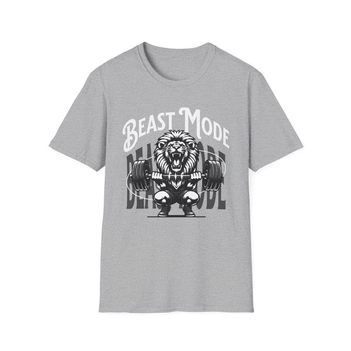 The Design: The bold “BEAST MODE” text arches over a powerful lion mid-lift, symbolizing primal strength, focus, and ferocity. This is the ultimate wearable motivation for conquering your goals.