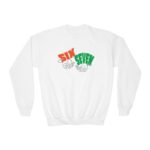 Inspired by the energy of the game, this sweatshirt showcases a vibrant, high-contrast design. The words “SIX” (in bold orange) and “SEVEN” (in sharp green) are placed above cool, white line-art hands throwing up the iconic six and seven hand signals. It’s a fantastic piece for any young sports enthusiast or a kid with a unique sense of style. The soft, cozy fabric ensures all-day comfort, while the durable graphic will keep its edge wash after wash. Pair it with jeans or just something comfortable for an effortlessly cool look.