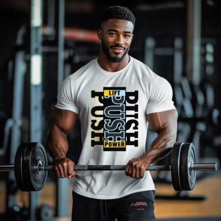 PUSH LIFT POWER – Motivational Gym T-Shirt Fuel your intensity with the “Push Lift Power” tee. This dynamic design is